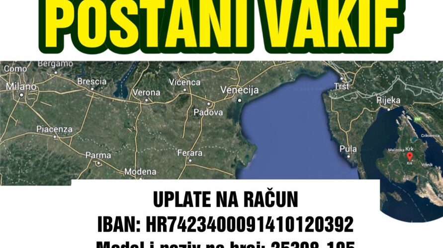 Dragi ljudi, esselamu alejkum.Na otoku Krku imamo akciju kupovine mesdžida. To je prvi mesdžid na jednom od otoka Jadranskog mora. Molim vas sve za podršku. Allah da vam nadoknadi u zdravlju, sreći i berićetu na dunjaluku, a na ahiretu dvorcem u džennetu. Amin