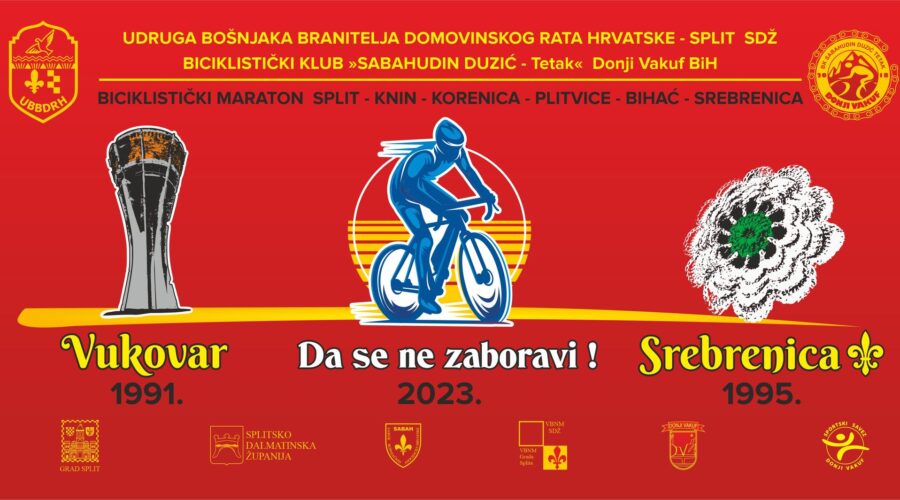 Biciklistički maraton Split – Knin – Korenica – Plitvice – Bihać – Srebrenica. Start Split 04.07. 2023. godine u 08:00 sati, Trg Gaje Bulata. Drugu godinu za redom Udruga Bošnjaka branitelja, Split i SDŽ, Sabor bošnjačkih asocijacija Hrvatske i BK “Sabahudin Duzić Tetak” iz Donjeg Vakufa, Bosna i Hercegovina, organiziraju biciklistički maraton u sjećanje na […]